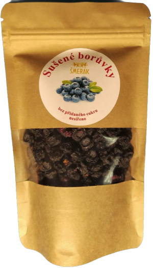 Námi vypěstované borůvky a následně usušené v naší sušárně rozhodně stojí za ochutnání. Skvělá svačinka nebo do pečení moučníků. Bez přidaného cukru, nesířené.